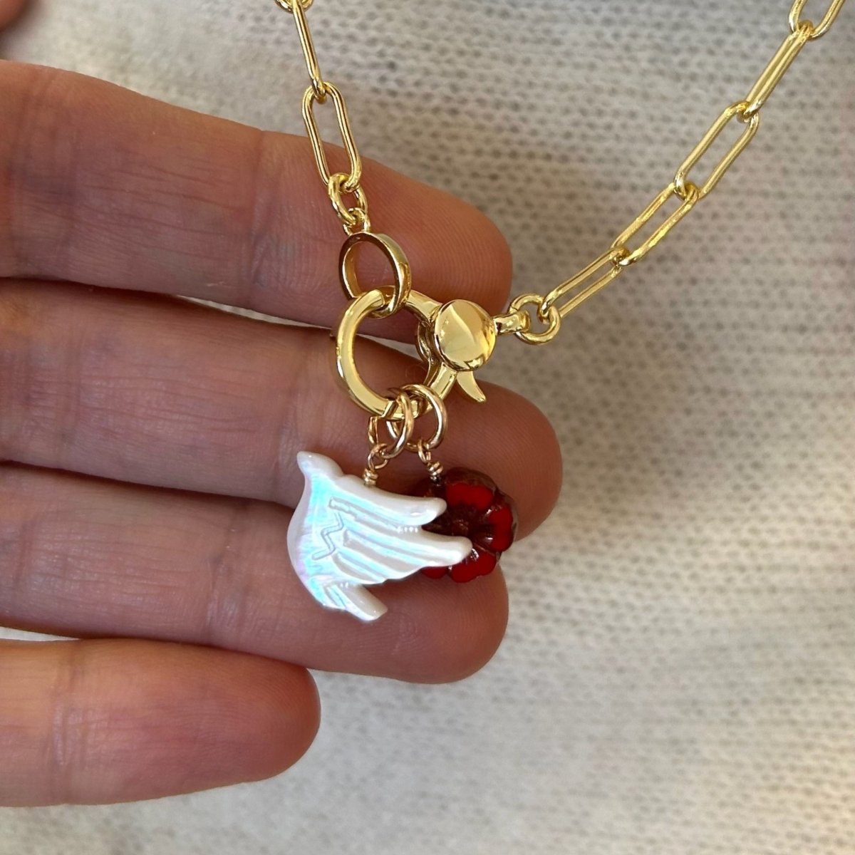 A symbol of peace, love, and gentle beauty. This Mother of Pearl dove charm is hand-carved with soft, natural iridescence that glows with every movement. Its smooth silhouette adds a meaningful touch to any charm necklace, bracelet, or pair of hoops.