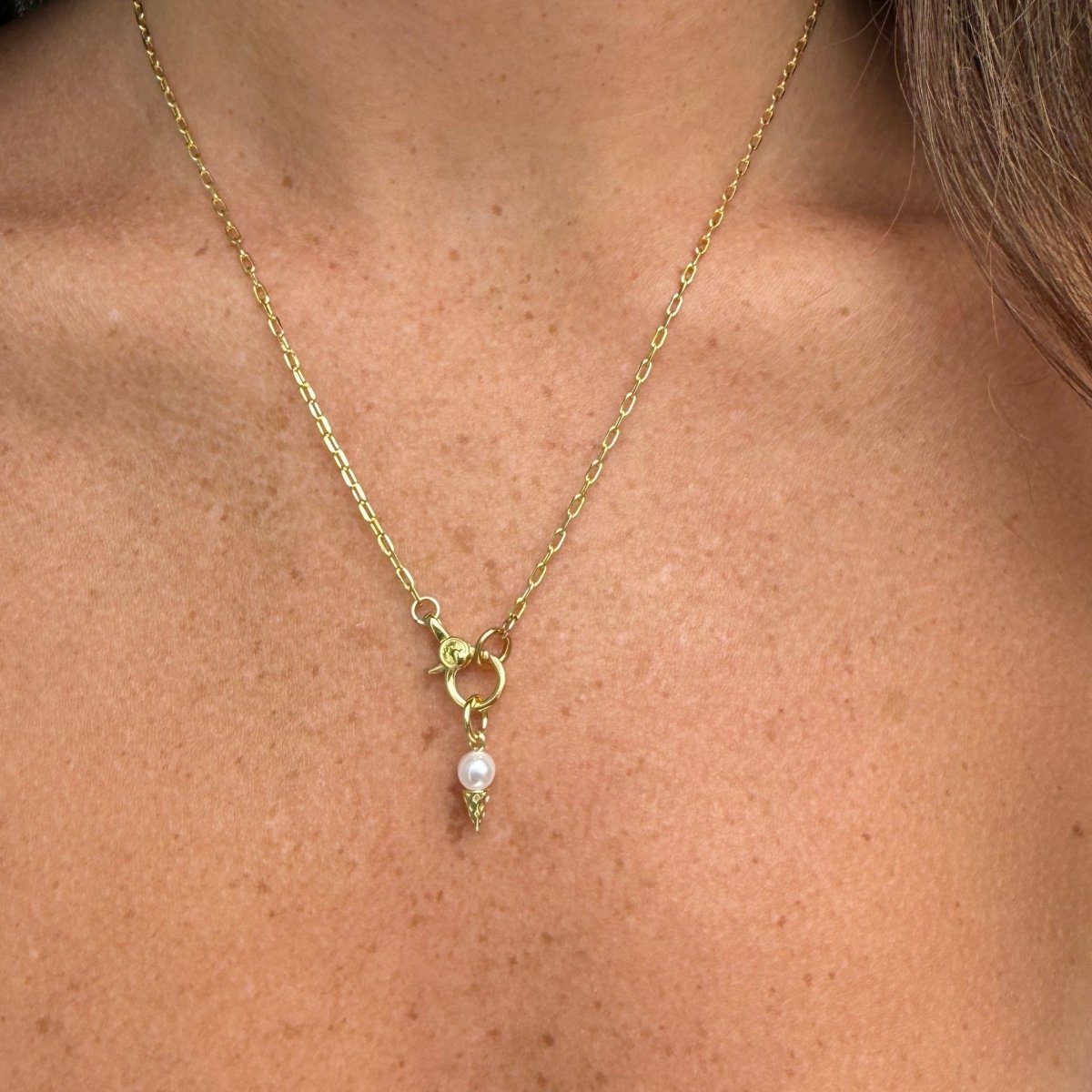 A sweet twist on fine jewelry. This delicate ice cream cone features a luminous freshwater pearl scoop perched atop a textured gold or silver cone, capturing the whimsy of summer with a touch of elegance.