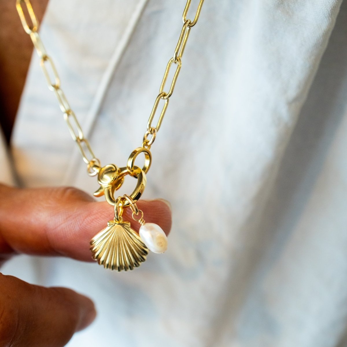 A tiny token of the sea. This delicate scallop shell charm is a sweet reminder of island days and salty breezes. Cast in lustrous metal with fine ridged detail, it’s perfect on a charm necklace, bracelet, or your favorite pair of hoops. Whether you're commemorating beachside memories or adding a coastal touch to your everyday look, this little shell is full of meaning and charm.