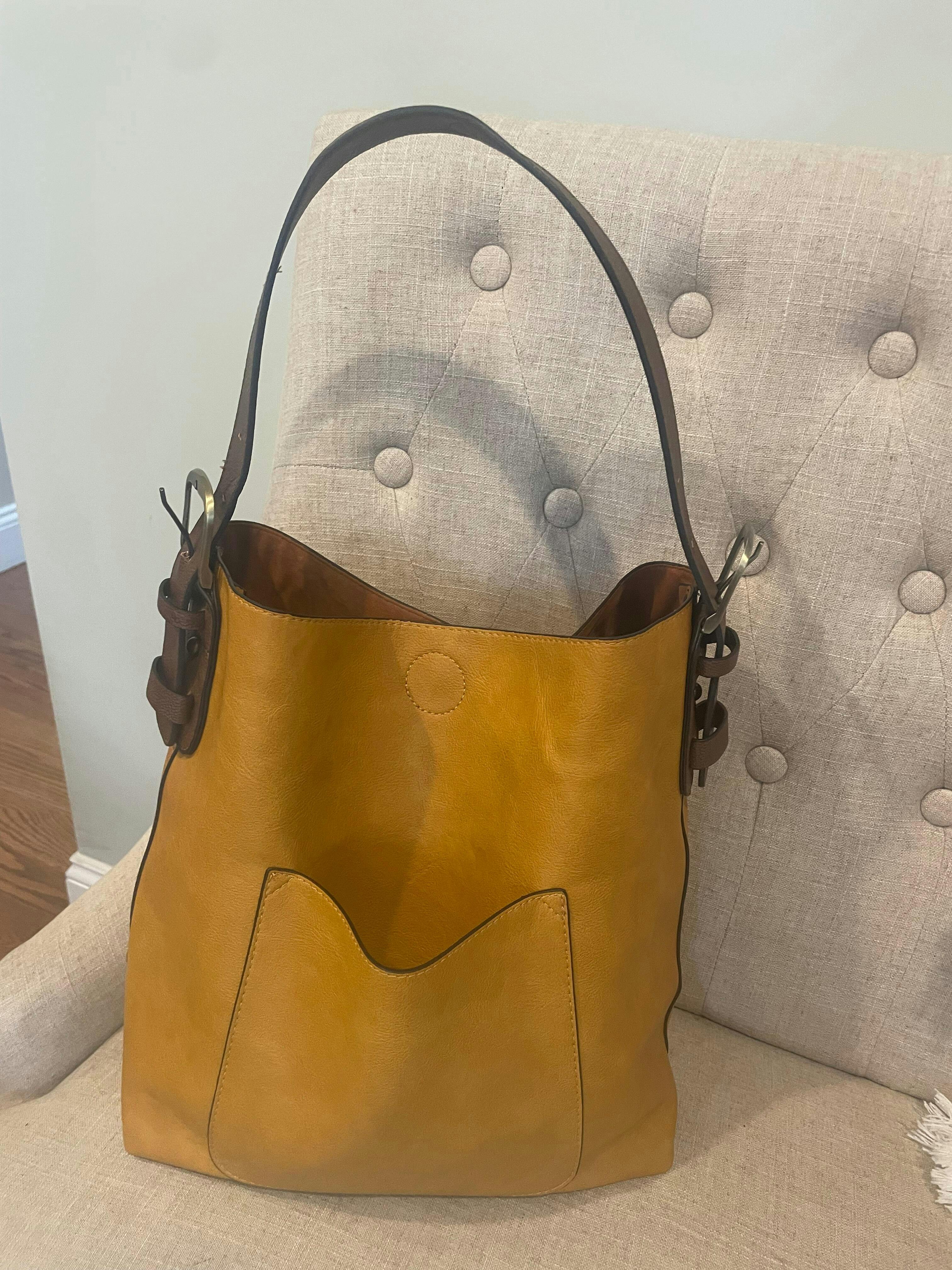 Equally timeless and modern, this best-selling classic hobo is made in rich vegan leather in beautiful colors always accented with neutral straps. Each bag comes with a smaller bag inside that can be used independently! The roomy main bag accented with a large front pocket and a snap-in removable crossbody bag, both with plenty of room to carry your needs in style.