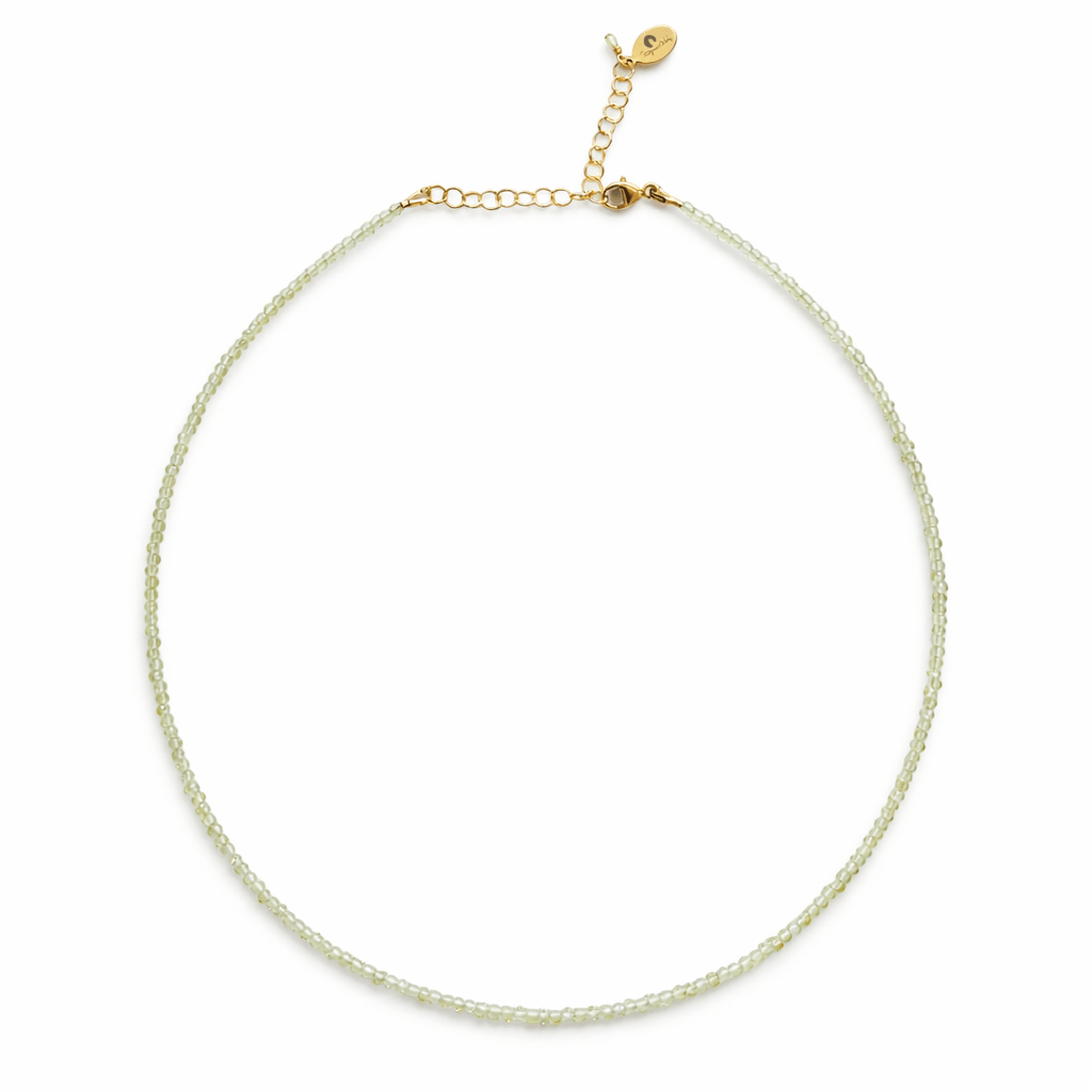 This Mini Peridot Gemstone Necklace is the perfect layering piece for summer. This delicate necklace features approx. 2mm faceted beads of vibrant peridot gemstones, each one carefully chosen for its vibrant, spring green hues. Wear this necklace from beach to brunch, and let the light green sparkle gemstones sparkle from day to night.