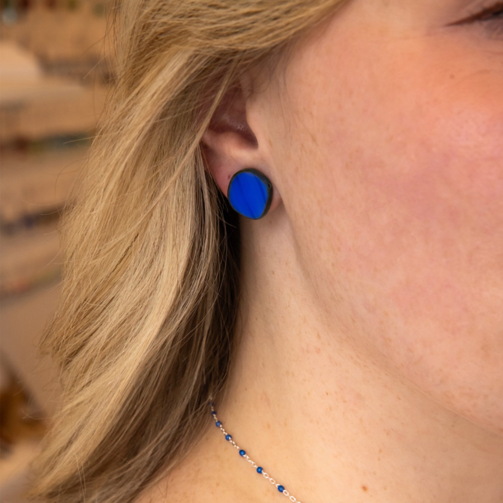 Royal Blue Circle Glass Beaded Small Stud Earrings