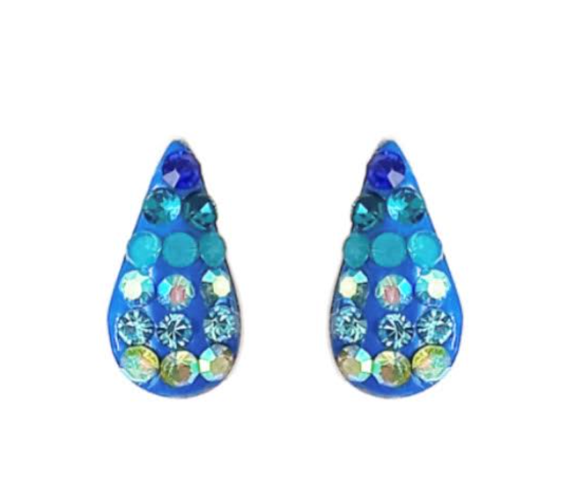 Our Mosaic Teardrop Stud Earrings are crafted in .925 sterling silver and feature layered ocean-blue tones that shift and shimmer with the light. Inspired by sea glass and open water, they offer a refined pop of color with a slightly more elongated silhouette.