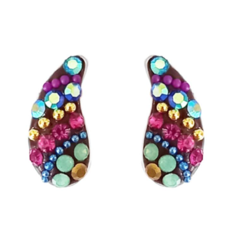 Our Mosaic Curved Teardrop Stud Earrings are crafted in .925 sterling silver and feature a bold Carnival-inspired palette of gold, hot pink, soft green, and cobalt blue. Rich and energetic, these colors come together in a dynamic mosaic that feels playful yet polished.