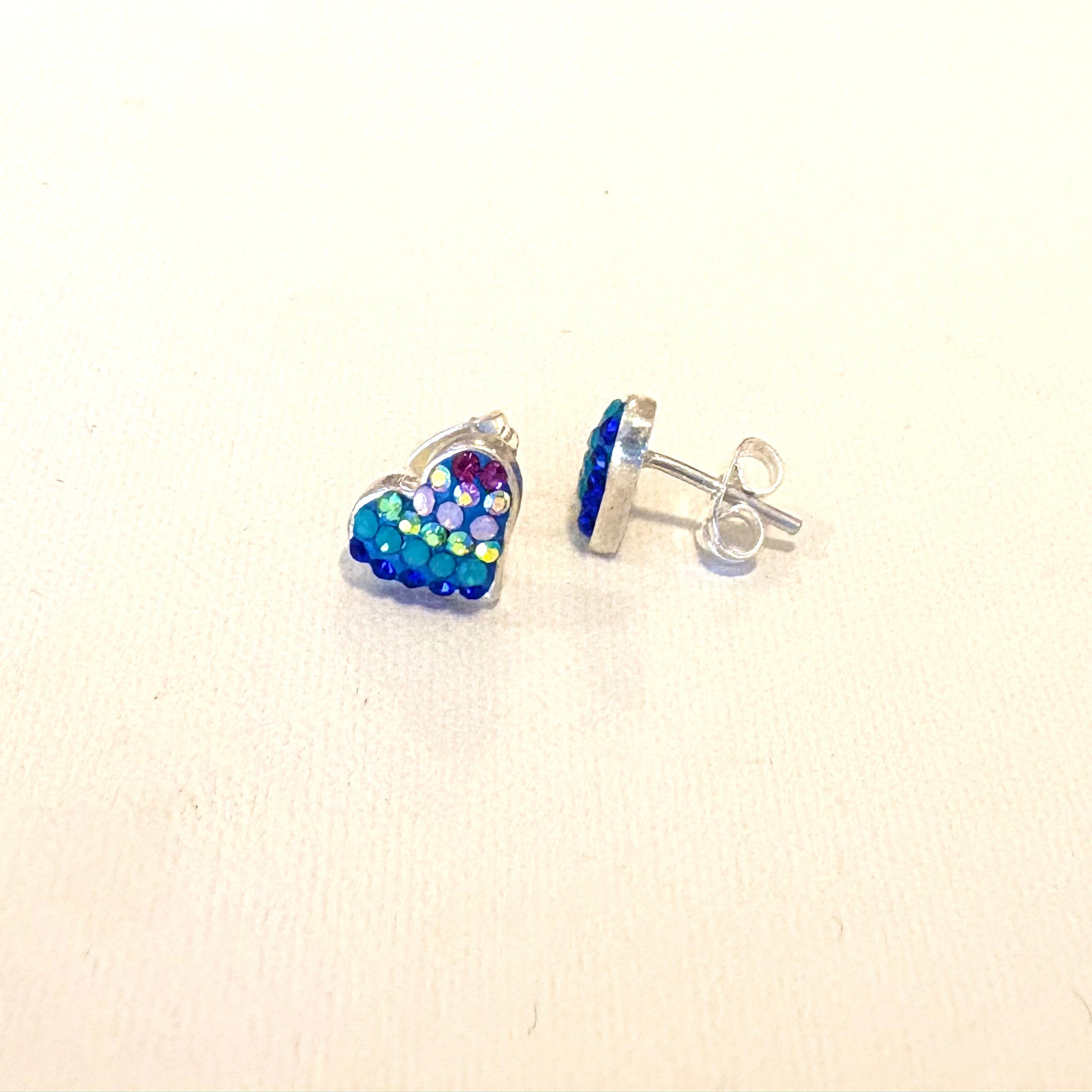Our Rainbow Mosaic Heart Stud Earrings are crafted in .925 sterling silver and feature a vibrant rainbow palette with pink, yellow, green, and red arranged in striking striped patterns. Bright and expressive, they bring a joyful pop of color with a classic heart-shaped silhouette.