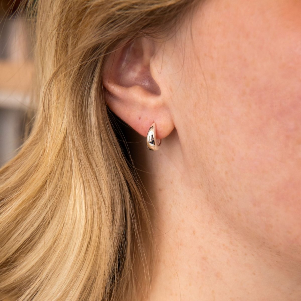 These teardrop huggie hoop earrings will become your new favorite pair! These exquisite earrings feature a delicate teardrop design, nestled within a timeless huggie hoop. Simple and comfortable to wear everyday, you can even sleep with them in.