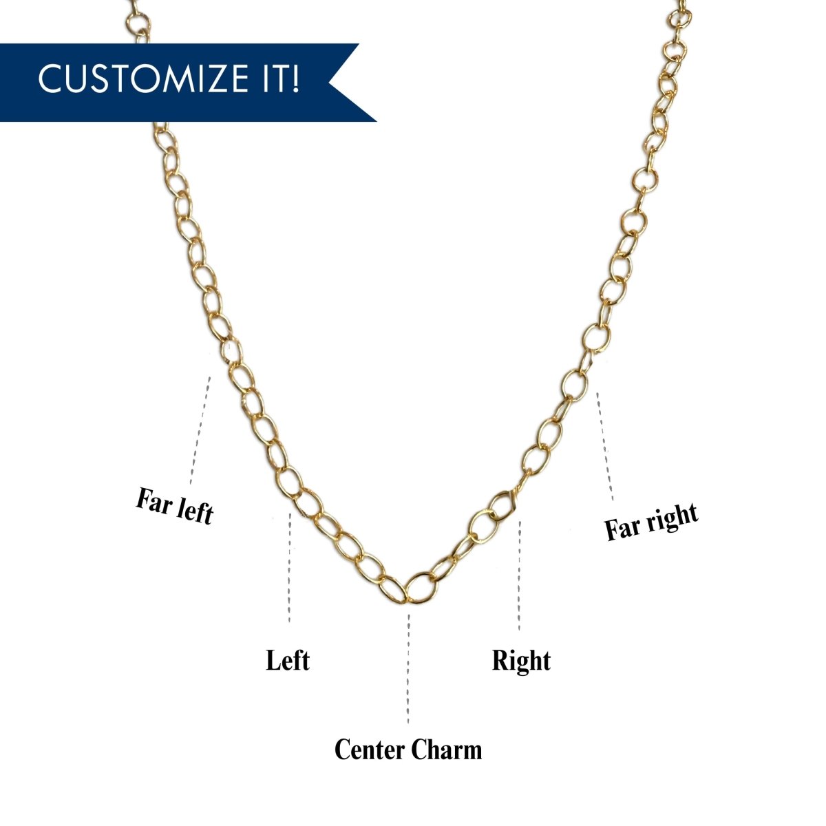 You can customize with any number of charms, though we recommend an odd number so there’s a clear focal point. - Tell us your layout at checkout In the “Order Notes” box, let us know how you’d like your charms arranged: Center, Left, Right, Far Left, Far Right