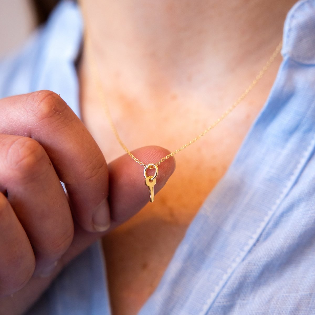 This Mini Key Charm is a fun addition to your collection of charms. The dainty key-shaped charm comes in 14k gold vermeil & sterling silver.