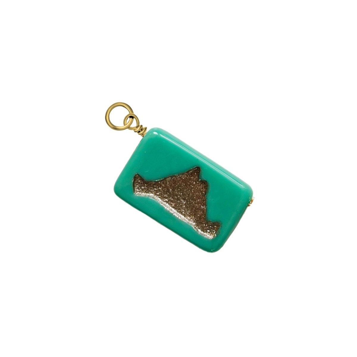 Take our iconic Martha's Vineyard glass tile charm and make it your own! This Turquoise MV Island Charm hooks perfectly on our custom Charm Holder Necklace. Your rectangular glass island charm will hang from the ring at an angle.