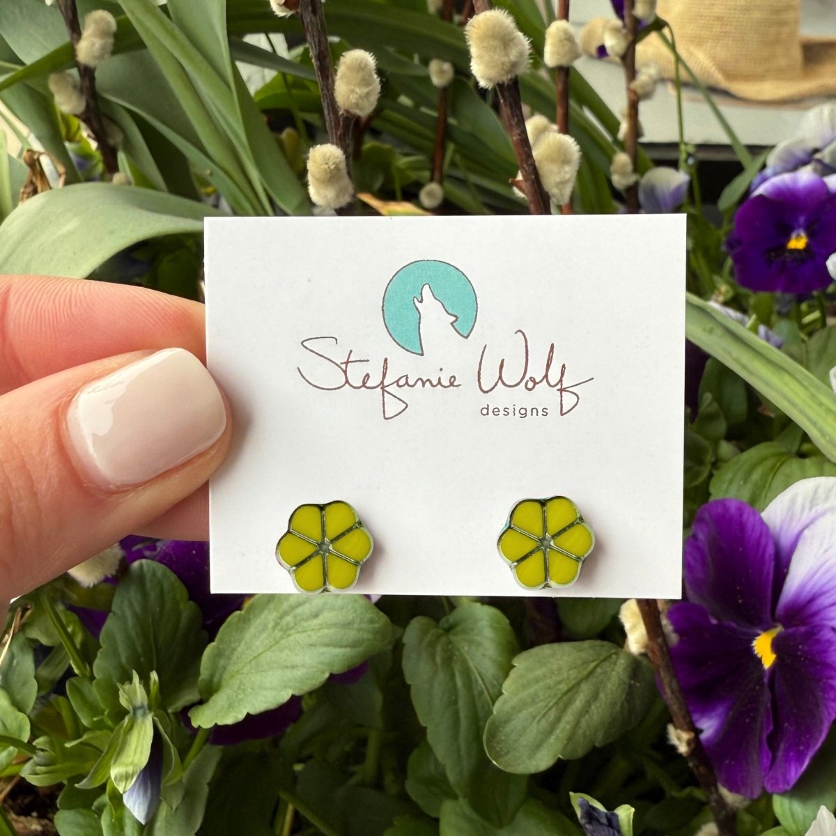 Each tiny bloom is pressed from vibrant glass and paired with a sterling silver post for easy everyday wear. Lightweight, cheerful, and timeless—these earrings add just the right pop of color and charm to any look. Choose your favorite hue or collect them all for a fresh garden of options.