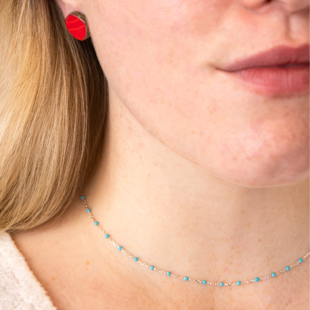 Delicate enamel bead stations complement the dainty links of this handmade gold fill chain bracelet. Add a subtle pop of color to your collection or your wrist stack for easy layering!