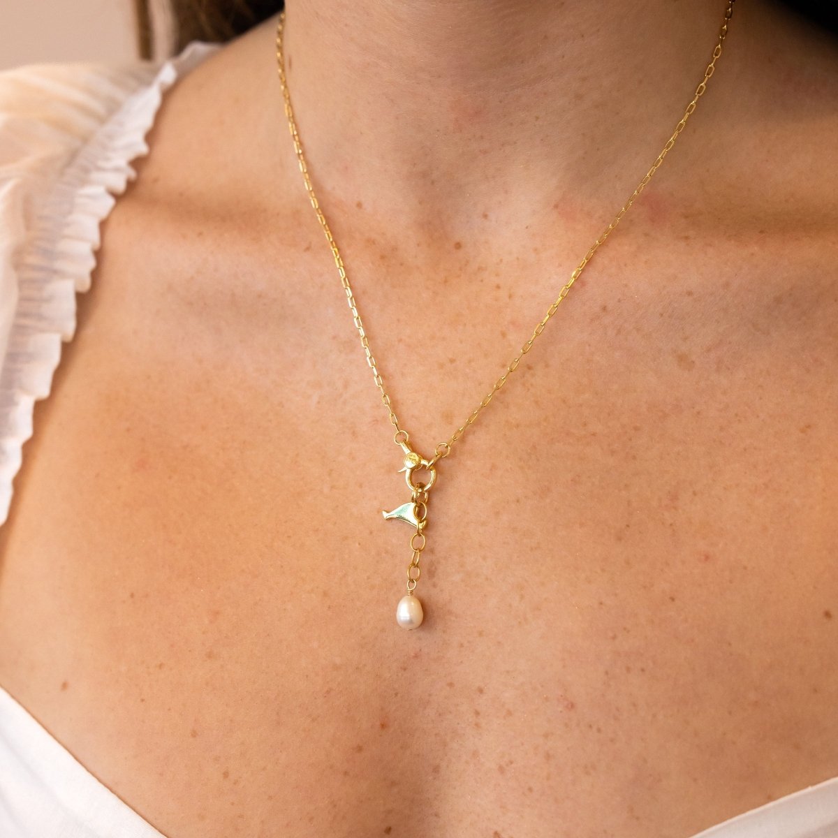 White Freshwater Pearl + Chain Drop Charm