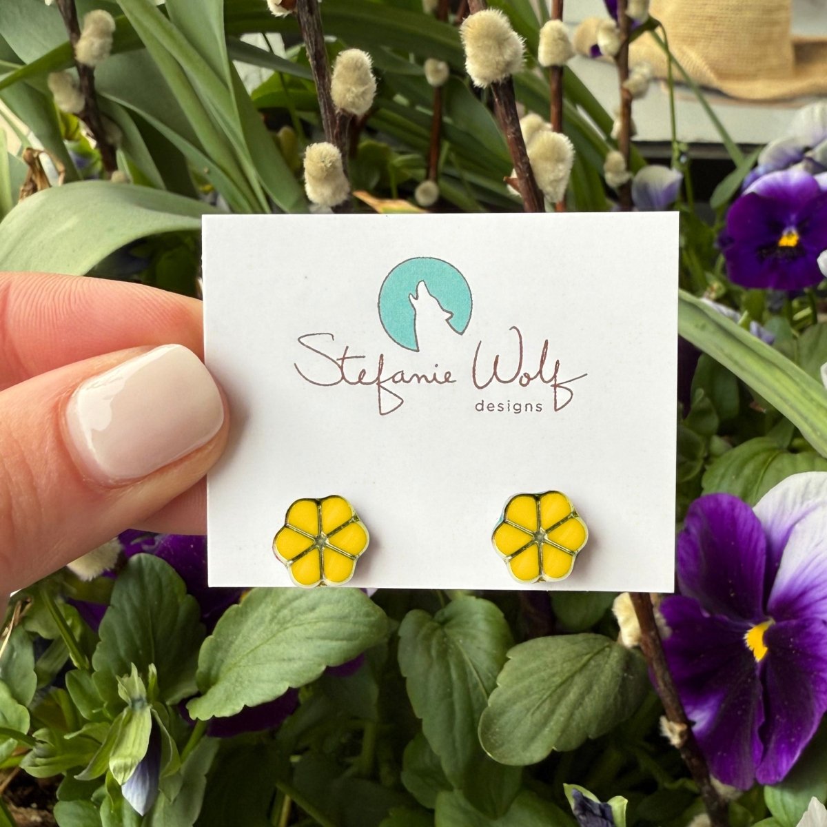 Each tiny bloom is pressed from vibrant glass and paired with a sterling silver post for easy everyday wear. Lightweight, cheerful, and timeless—these earrings add just the right pop of color and charm to any look. Choose your favorite hue or collect them all for a fresh garden of options.